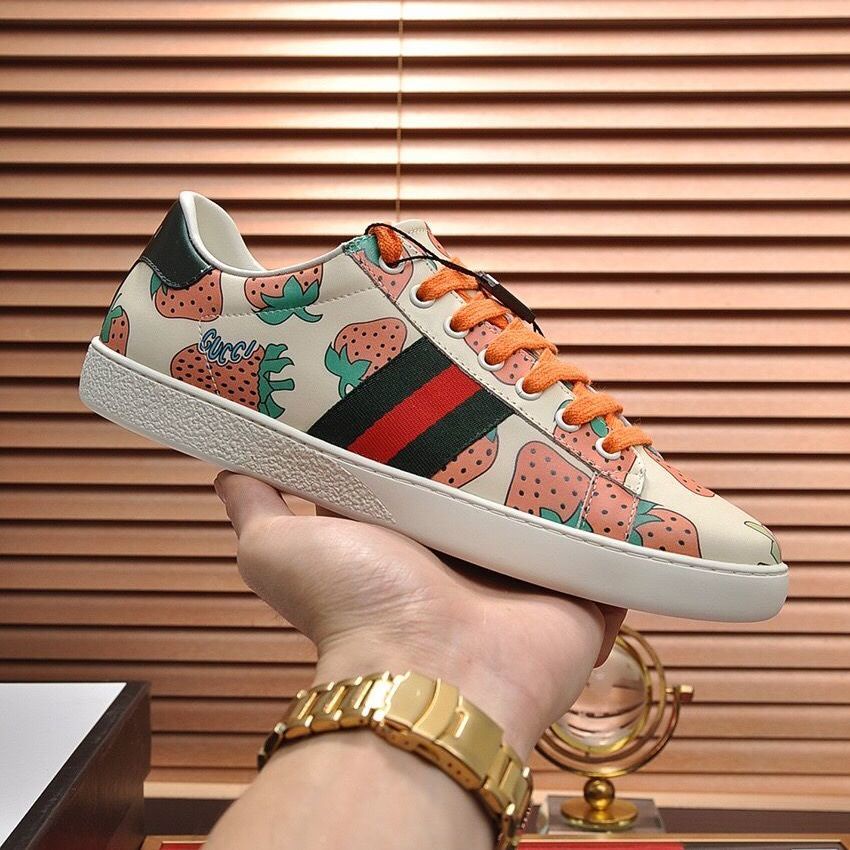 GUCCI Men s Shoes Men s Genuine Leather Lovers Shoes Strawberry Casual Sneakers Board Shoes Men s Sh Very well made.