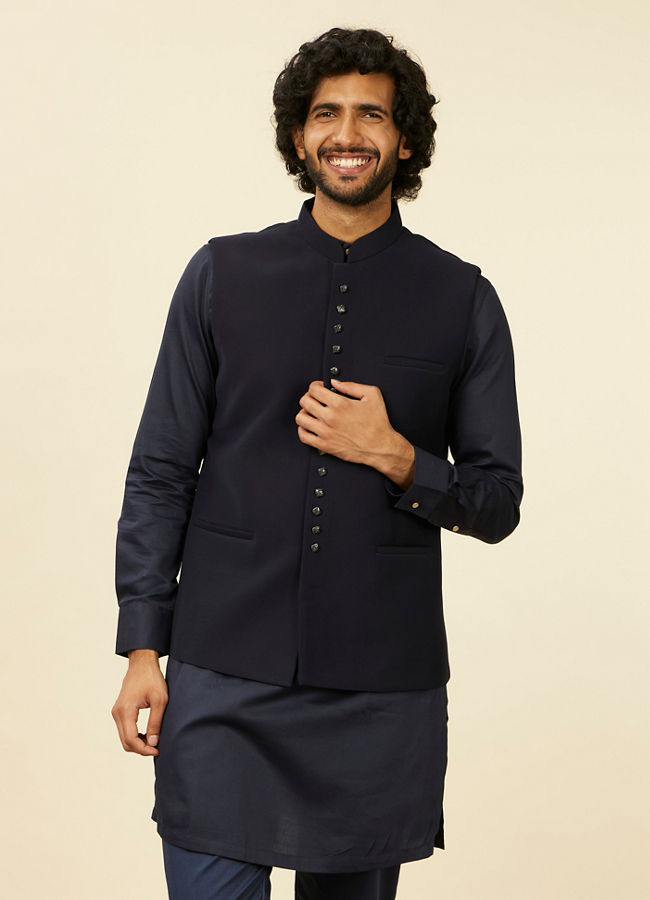 Buy Classic Dark Blue Nehru Jacket Online in the USA Manyavar Nehru Jacket for Men Very well made.