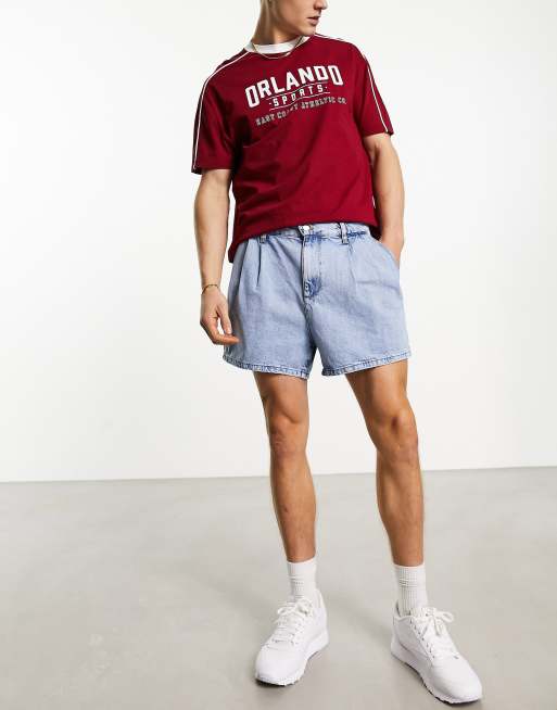 ASOS DESIGN pleated mid length denim short in mid wash blue ASOS Very well made.