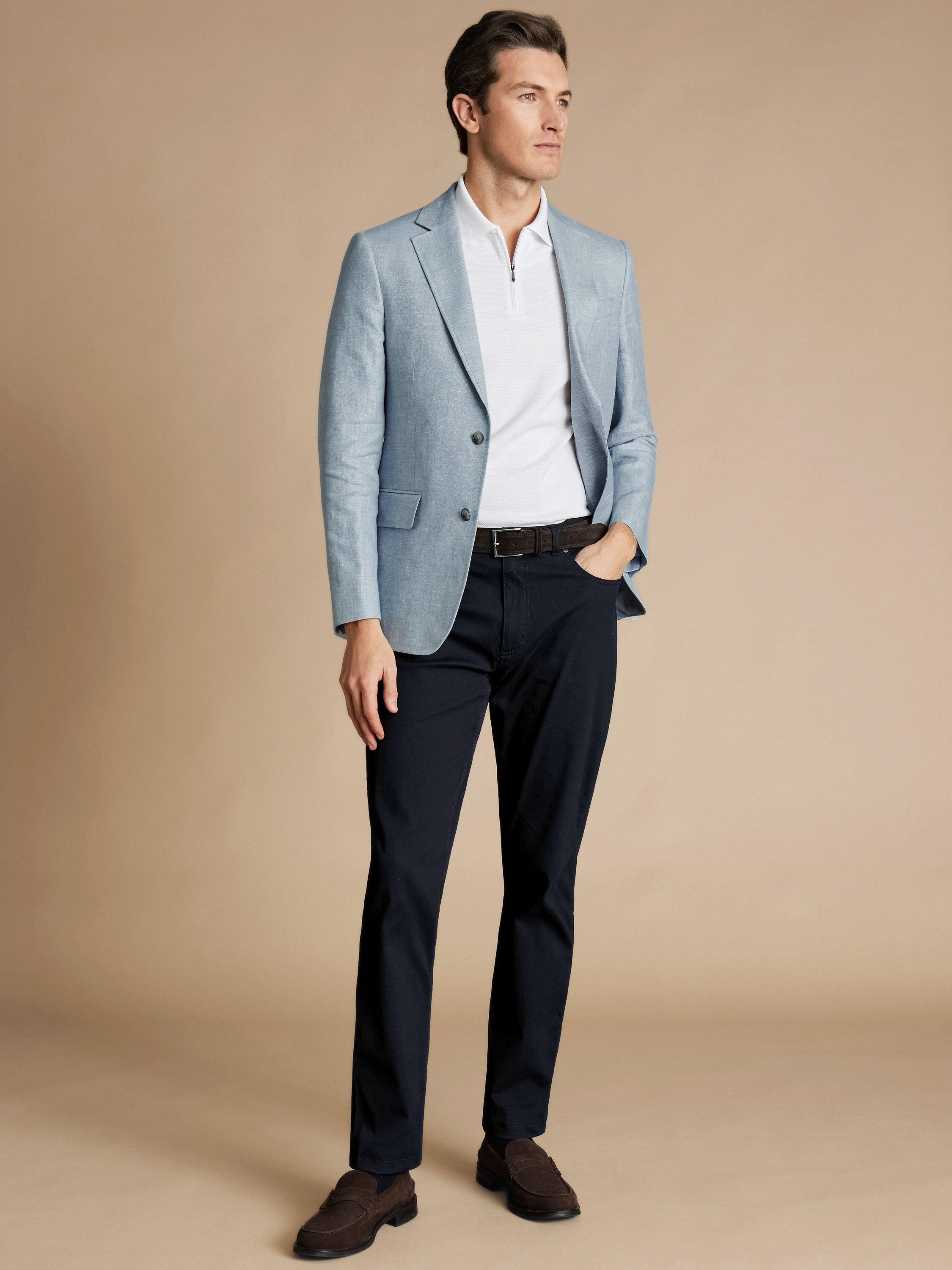 Charles Tyrwhitt Slim Fit Linen Blend Suit Jacket Mid Blue Very well made.