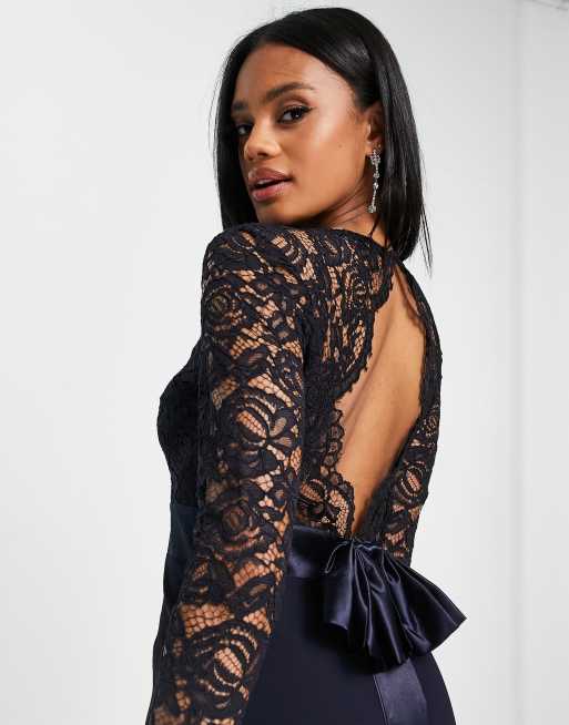 TFNC Vestito lungo da damigella in chiffon blu navy con scollo smerlato in pizzo sul retro e maniche lunghe ASOS Very well made.