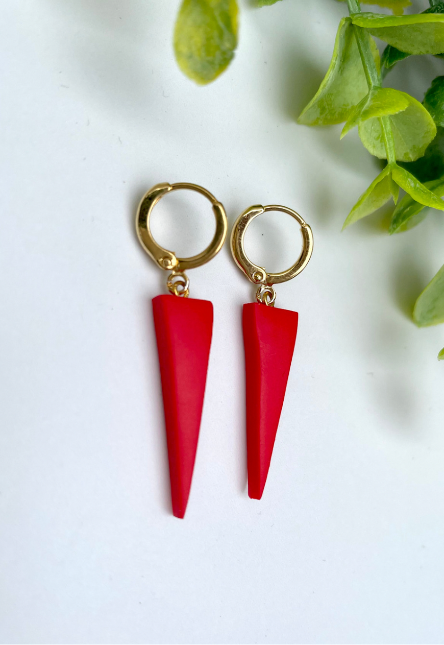 Cherry Red Triangle Statement Geo Drop Earrings Leetie Lovendale Very well made.