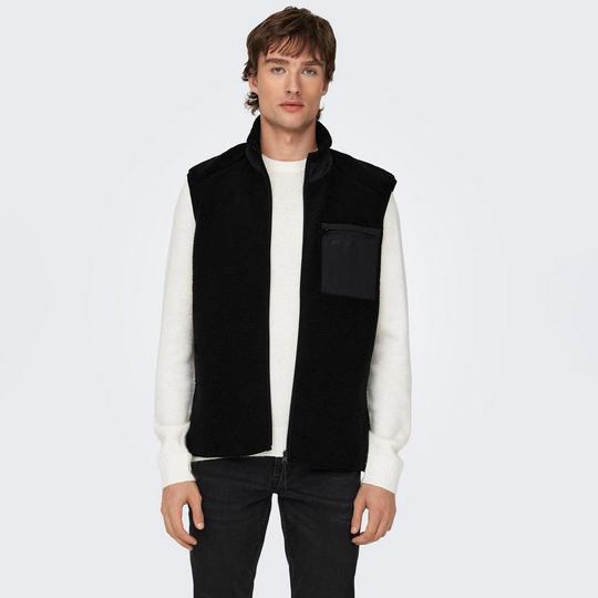 Only Sons Men s Sherpa Fleece Vest Jacket Black Size Medium Very well made.