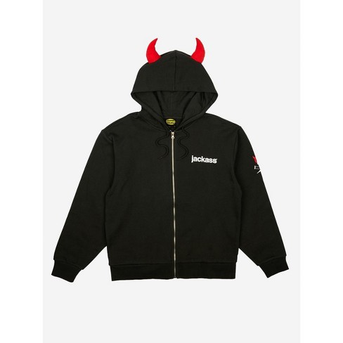 Jackass Devil Horns Long Sleeve Black Zip up Hoodie Target Very well made.